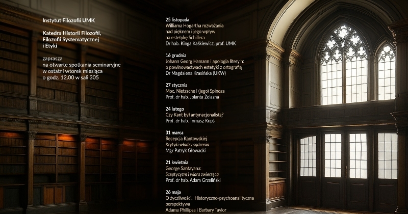 Katedry Historii Filozofii, Filozofii Systematycznej i Etyki Instytutu Filozofii...